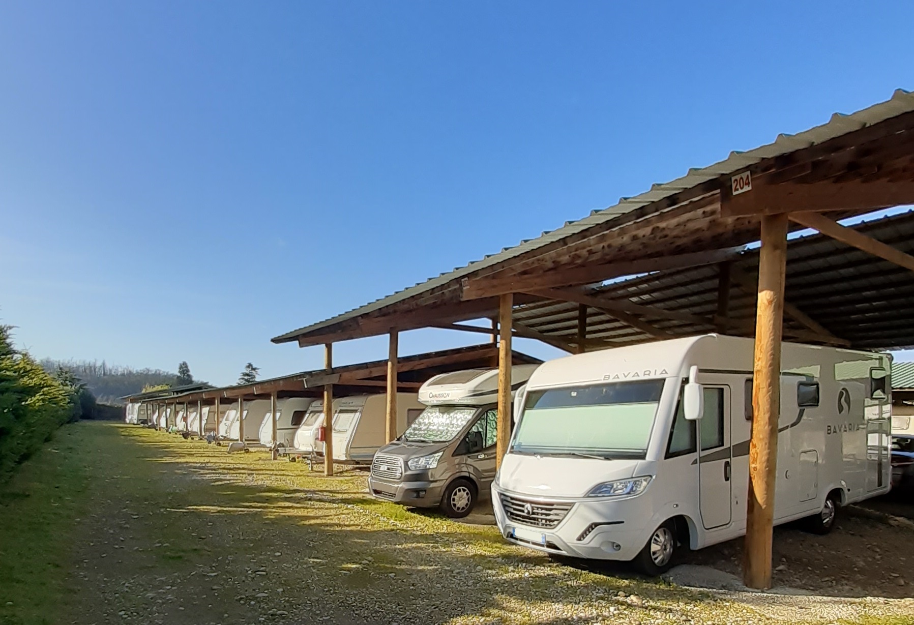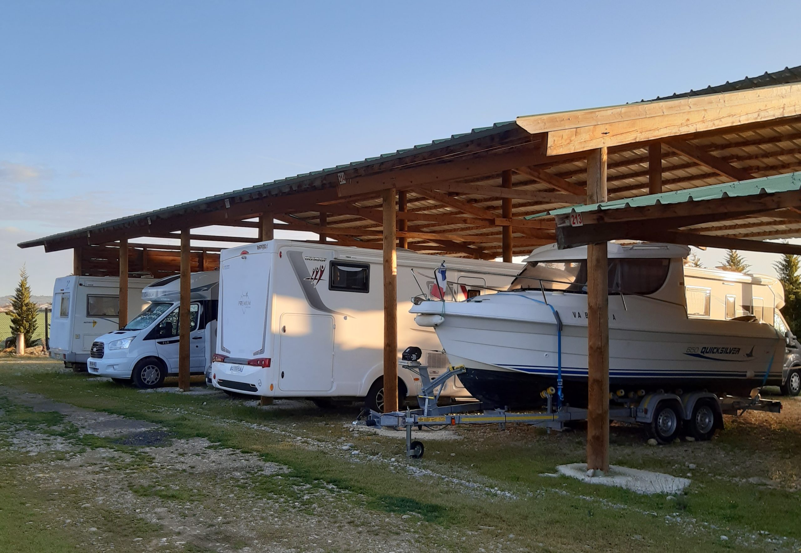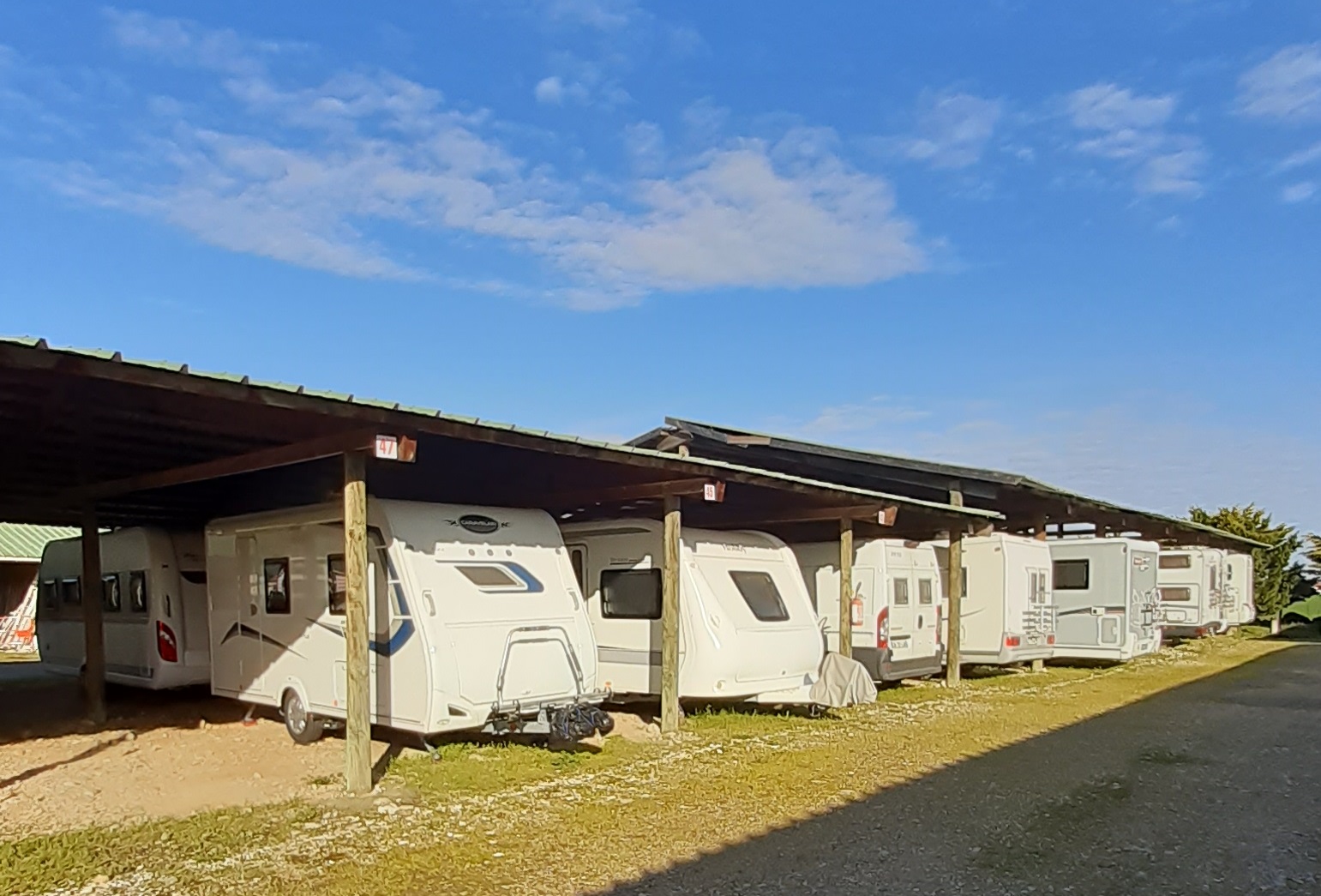 Emplacements couverts pour remisage des véhicules de loisirs (caravanes, camping-cars, bateaux), gardiennage et hivernage sur site sécurisé.